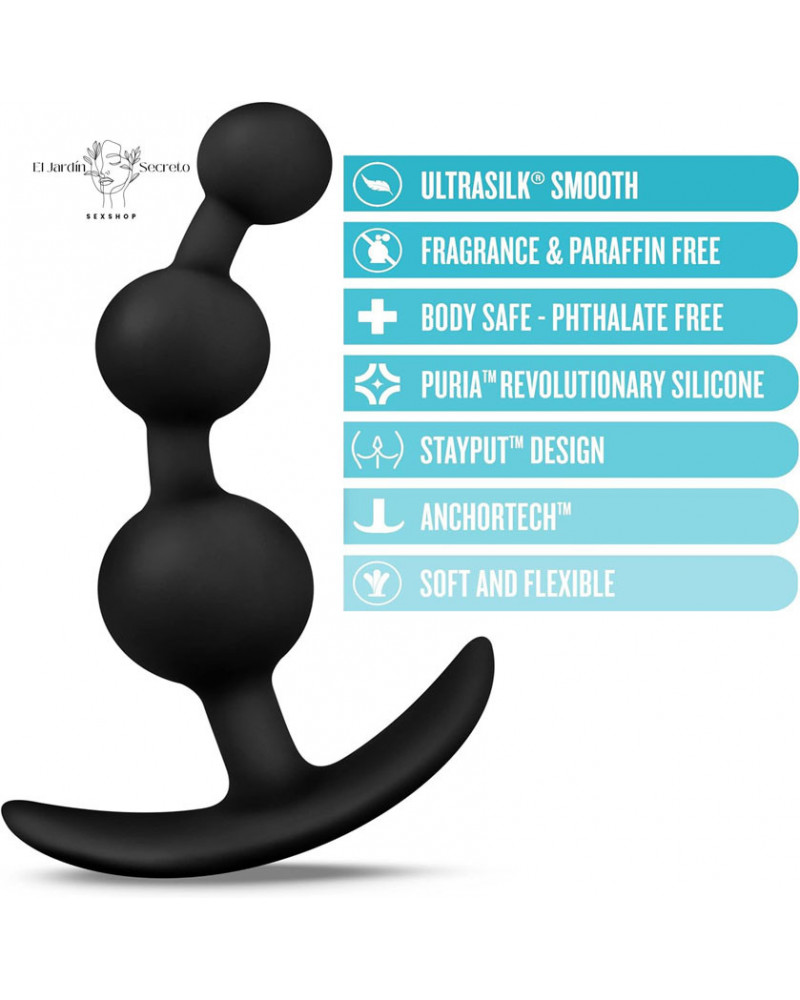 Small Anal Beads Black las tres perlas de Small Anal Beads se curvarán con tu cuerpo, mientras que la base de anclaje descansa cómodamente entre sus mejillas.